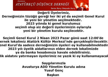 Değerli Üyeler, Değerli Atatürkçüler, Cumhuriyetimizin 101. yıldönümü kutlu olsun. Gazi Mustafa Kemal Atatürk ve silah arkadaşlarının, milletimizin azim ve kararlılığıyla ...